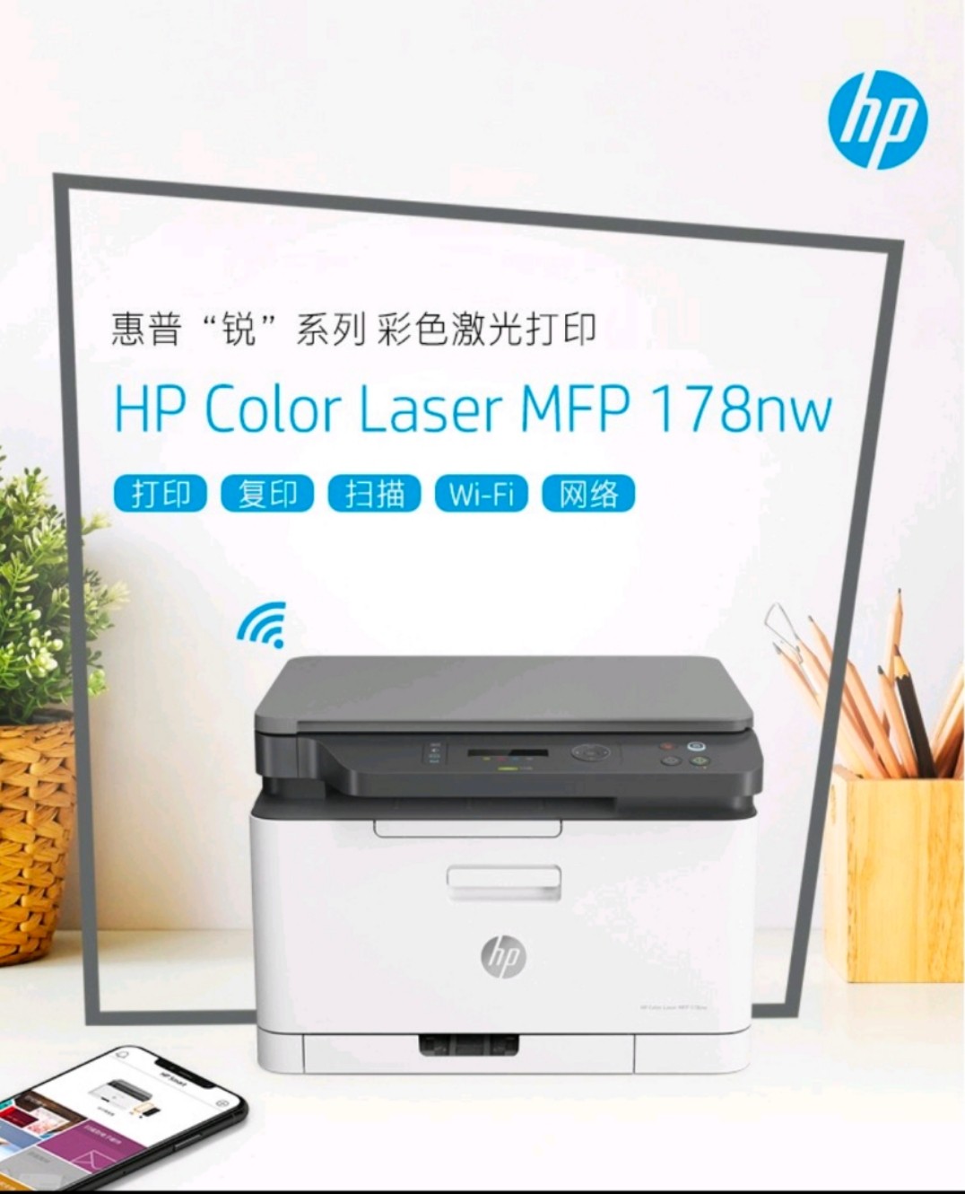 惠普178nw A4彩色激光打印复印扫描一体机 无线 178nw标配(180n升级版有线无线)