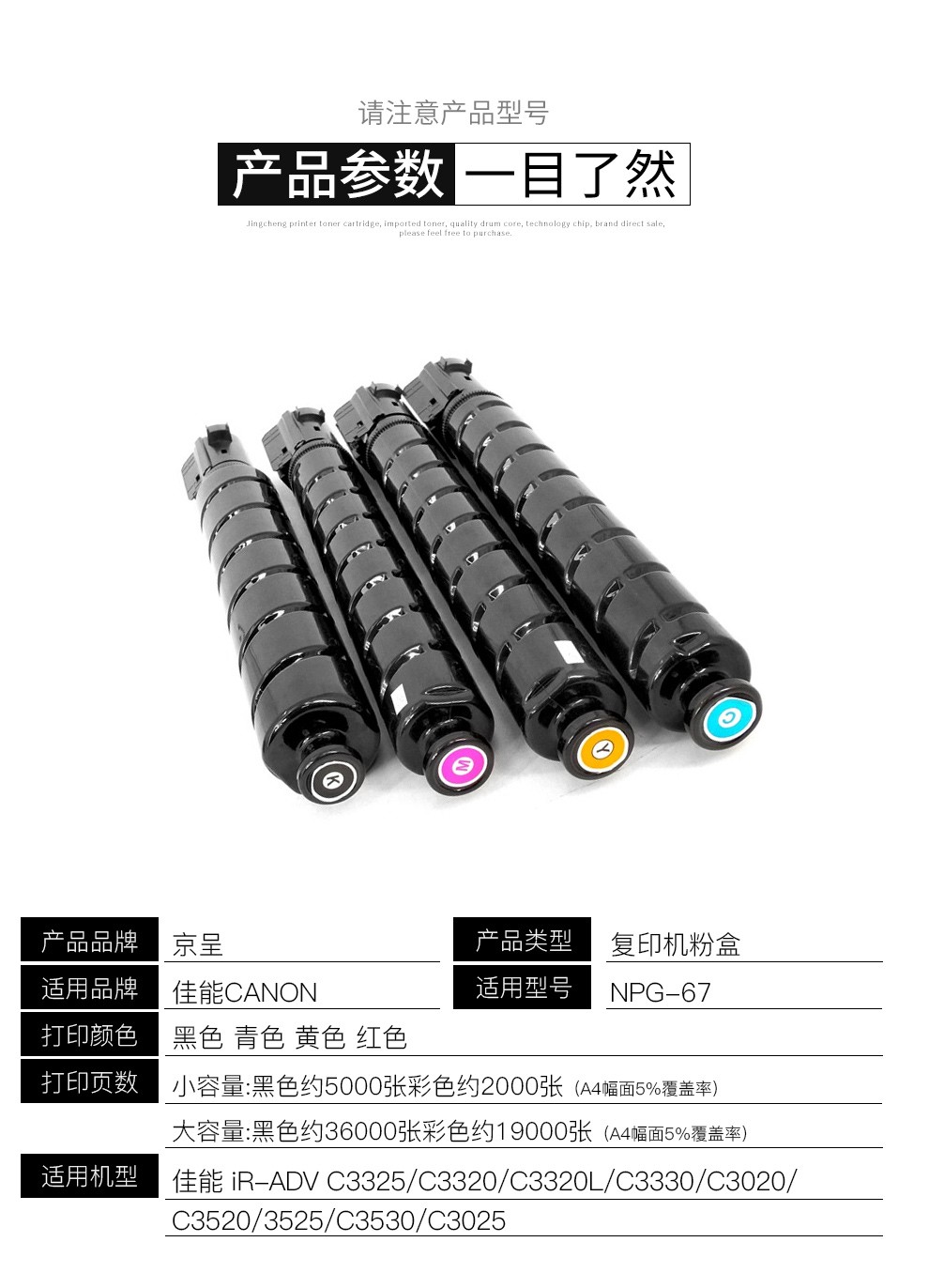 【荐】适用佳能复印机NPG-67粉盒C3020碳粉C3520 C3325墨盒C3320L墨粉筒3025硒鼓 NPG-67 大容量 黑色(36000页含载体)