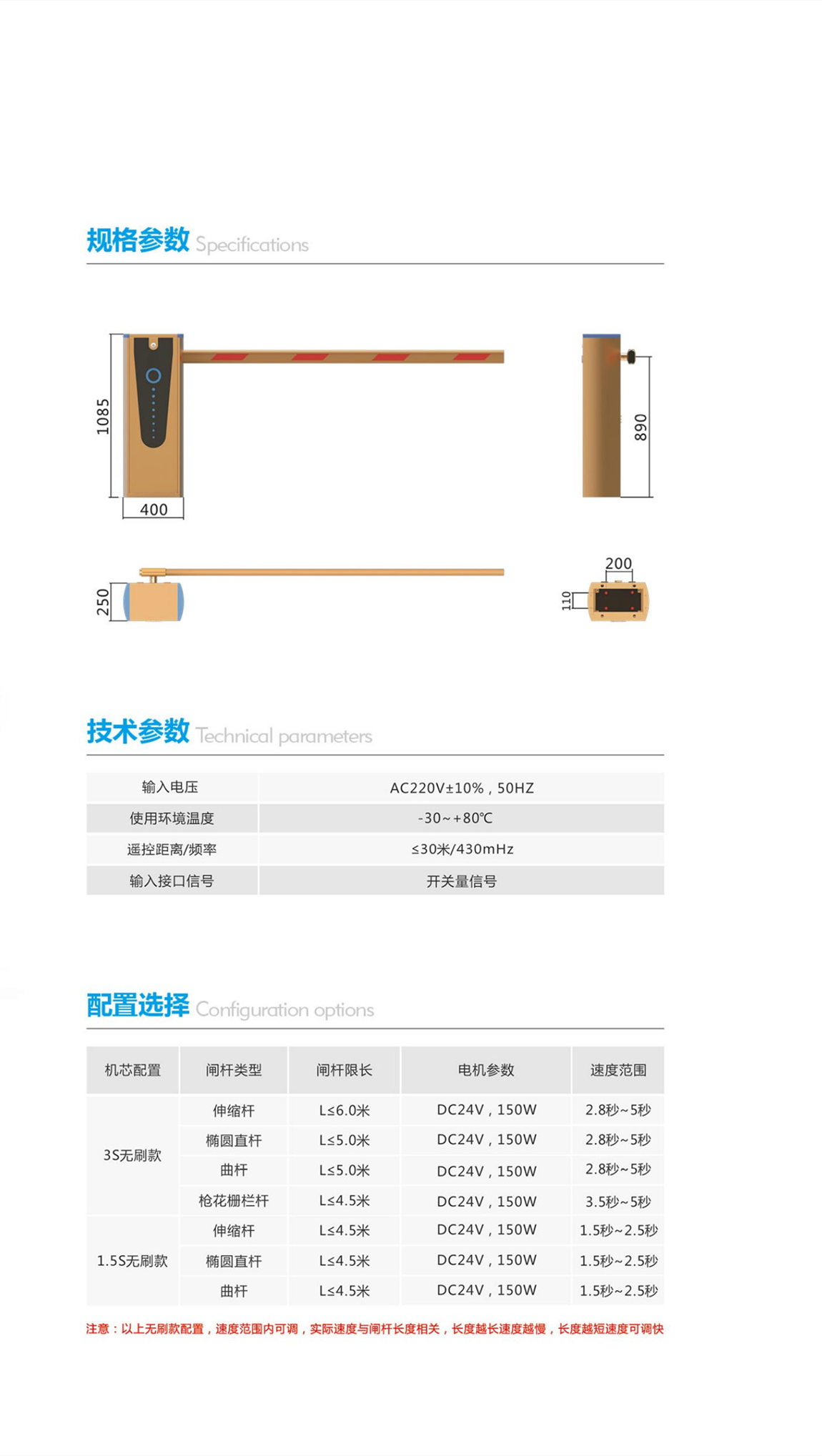 驰安 D108 门禁系统 智能道闸 -曲杆-3秒无刷款 车牌识别/道闸/停车场/车辆管理/大门/门禁