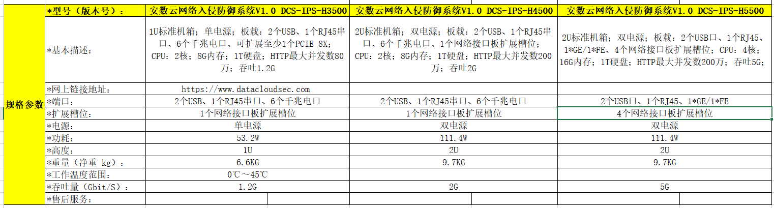 安数云网络入侵防御系统DCS-IPS-H3500