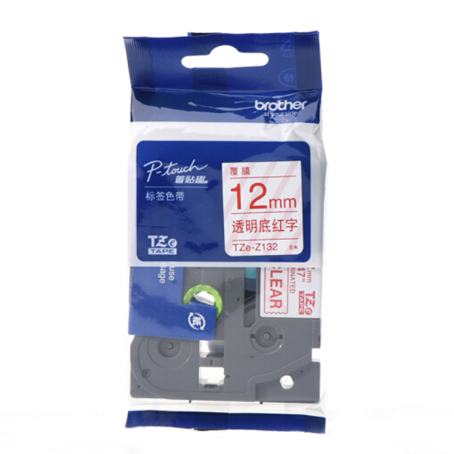 兄弟(brother)TZe-Z132 12mm透明底红字标签色带